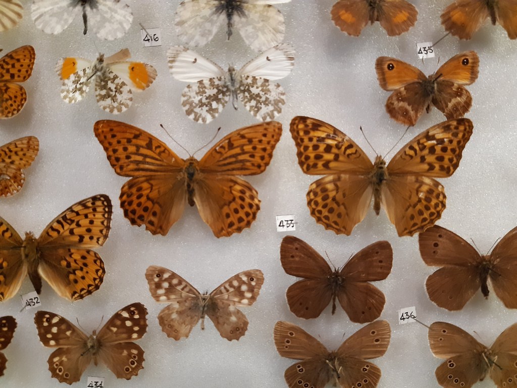 Woodland moths and butterflies on display in the Eton Natural History Museum.