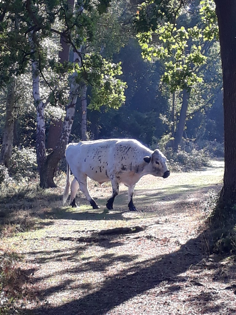 As you head uphill, it plateaus off to an area where there are British Whites. These are white cows, a breed that is about 400 years old.
