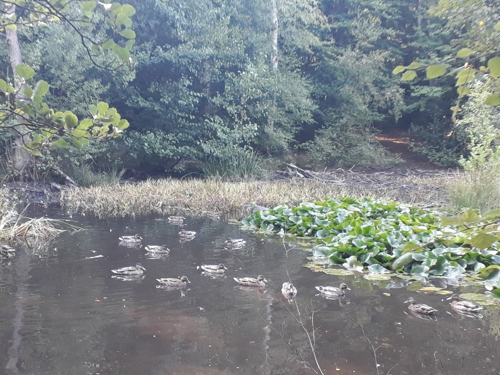 Mandarin ducks and Mallard ducks swim in the clearer areas where you can see a variety of water beetles and if you’re lucky, a water snake.